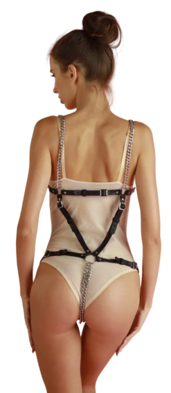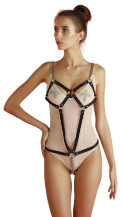 Love Style Band19 Leather — оригинальное БДСМ боди, выполненное из ремешков из натуральной кожи и дополненное красивыми цепочками.