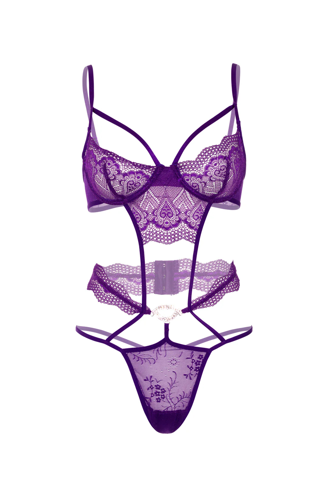 Удивите своего партнера, надев фиолетовое боди Daring Intimates Heart Lace Teddy with Jewel. Его дизайн выглядит до безумия сексуально, а фасон идеально подчеркивает фигуру, добавляя ей королевского шарма.