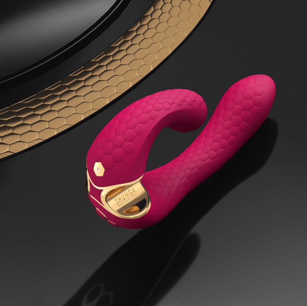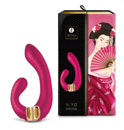 Shunga Miyo — двойной вибратор с эксклюзивным дизайном, эргономичной формой и невероятной мощью, который подойдет для любого типа телосложения и подарит максимально яркие ощущения от одновременной вагинально-клиторальной стимуляции.