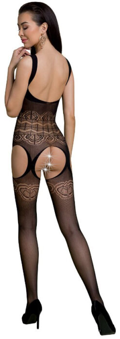 Passion Free Your Senses Eco BS005 — полупрозрачный комбинезон с ажурной вставкой в зоне талии и живота, который идеально облегает фигуру и соблазнительно имитирует чулки на подтяжках.