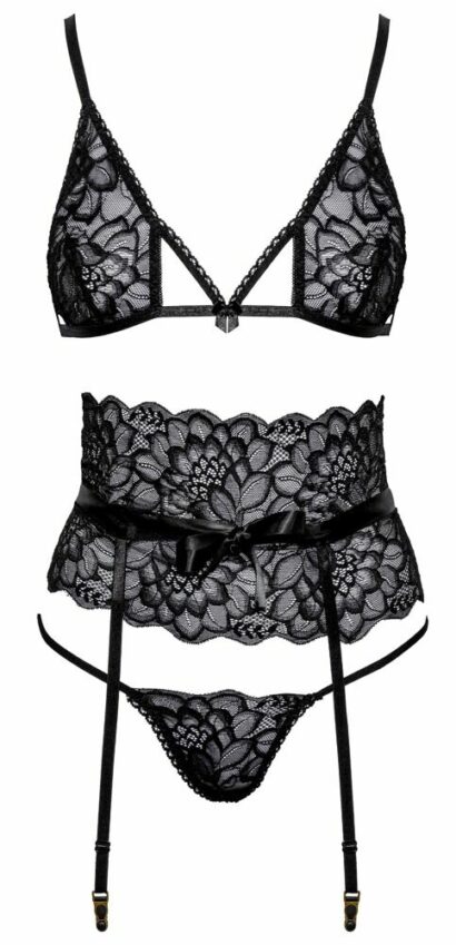 В комплекте Kissable Suspender Set Вы будете выглядеть невероятно сексуальной. Он состоит из кружевного бюстгальтера, широкого пояса на талию с подвязками для чулок и стрингов, которые станут роскошным украшением Вашего тела.