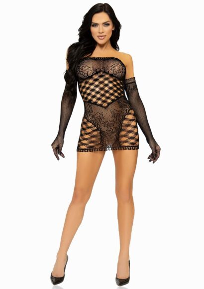 Комплект Leg Avenue Tube Dress And Gloves состоит из красивого платья-сетки и удлиненных прозрачных перчаток.