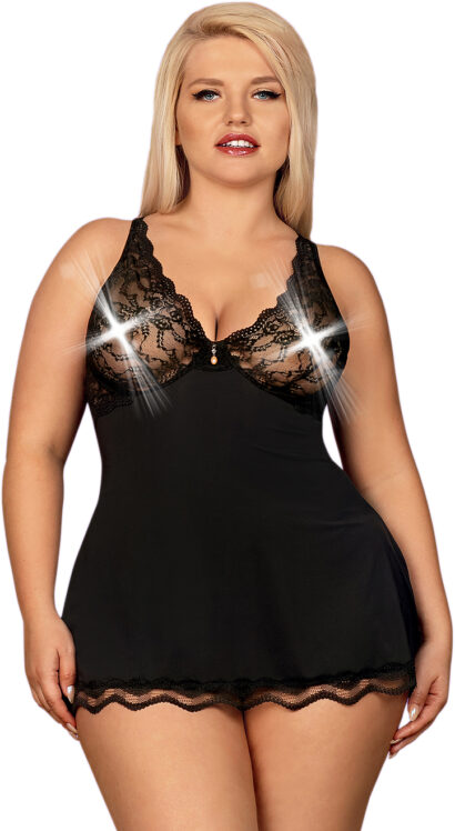 Obsessive Luvae — невероятно нежный комплект белья, в котором каждая девушка сможет почувствовать себя лучше, красивее и комфортнее. Сексуальный пеньюар сделан с полупрозрачным лифом, тогда как низ плотный. В комплект добавлены трусики-стринги.