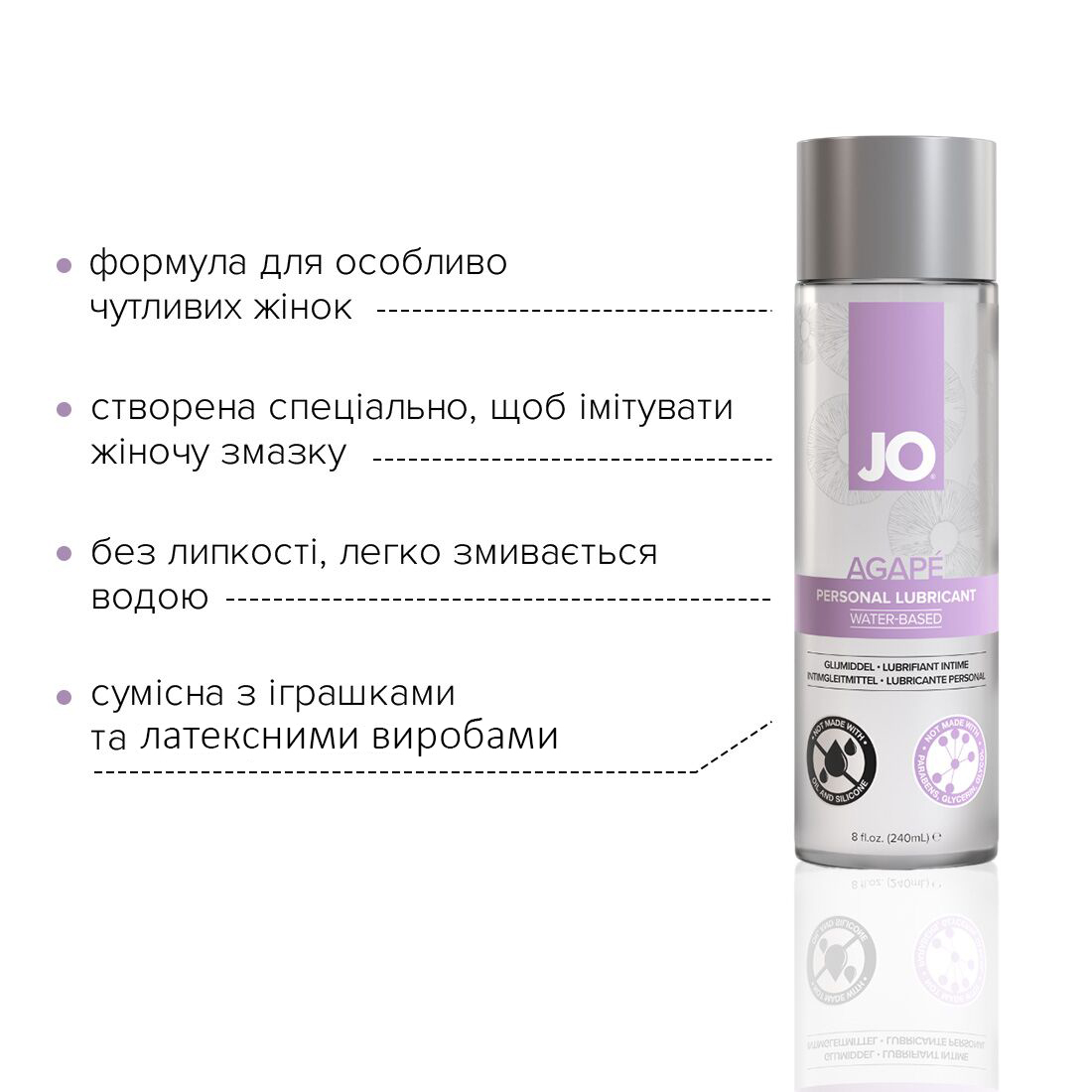 JO Women Agape — качественный лубрикант для секса, который имитирует естественную вагинальную смазку и обеспечит комфортное скольжение как во время контакта с партнером, так и при использовании игрушек для взрослых.