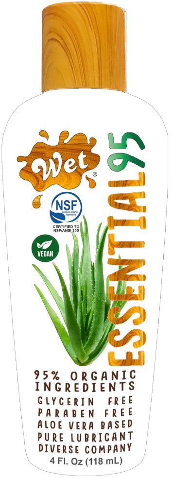 Лубрикант на водной основе Wet Essential 95 Organic Ingredients Vegan Aloe Lubricant — увлажняющее средство для секса, которое дарит идеальное скольжение и приятный уход за кожей интимных зон благодаря экстракту ромашки и алоэ в составе.