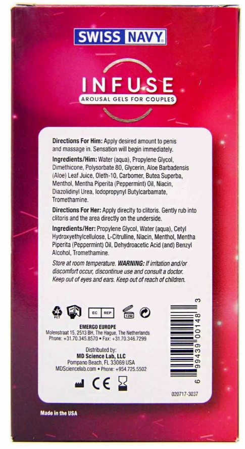 Swiss Navy Infuse Arousal Gels for Couples — отличный набор для пары, который сделает секс невероятно насыщенным, полным ярких ощущений и сумасшедшего удовольствия.