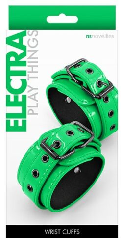 Наручники Electra Play Things Wrist Cuffs — яркие и прочные фиксаторы для рук, соединенные между собой коротенькими карабинами, дабы полноценно ограничить движения руками.