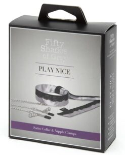 Fifty Shades of Grey Play Nice — безумно стильный и красивый ошейник с зажимами для сосков. Аксессуар не только будет очень пикантно смотреться на теле, но и стимулировать грудь.