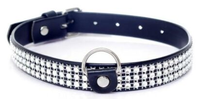 Boss Series Fetish Collar With Crystals — невероятно стильный ошейник — неширокий, украшенный множеством страз и сделанный с удобным колечком для поводка.