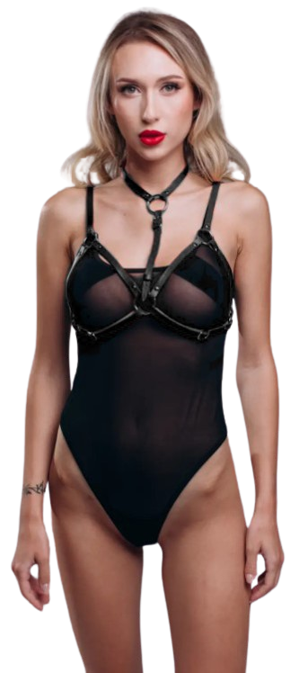 Портупея Candy Hero L11 — это роскошная имитация бюстгальтера с чокером, выполненная из тоненьких ремешков из экокожи.
