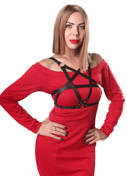 Love Style А5 — оригинальная БДСМ портупея в виде крупной звезды из ремней, которая будет оригинальным и пикантным украшением на теле.