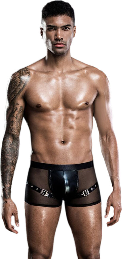 JSY — крутые и оригинальные мужские трусы, украшенные ремешками и выполненные сзади полупрозрачными. Они будут очень сексуально обтягивать бедра и добавят мужчине особенно эротичного вида.
