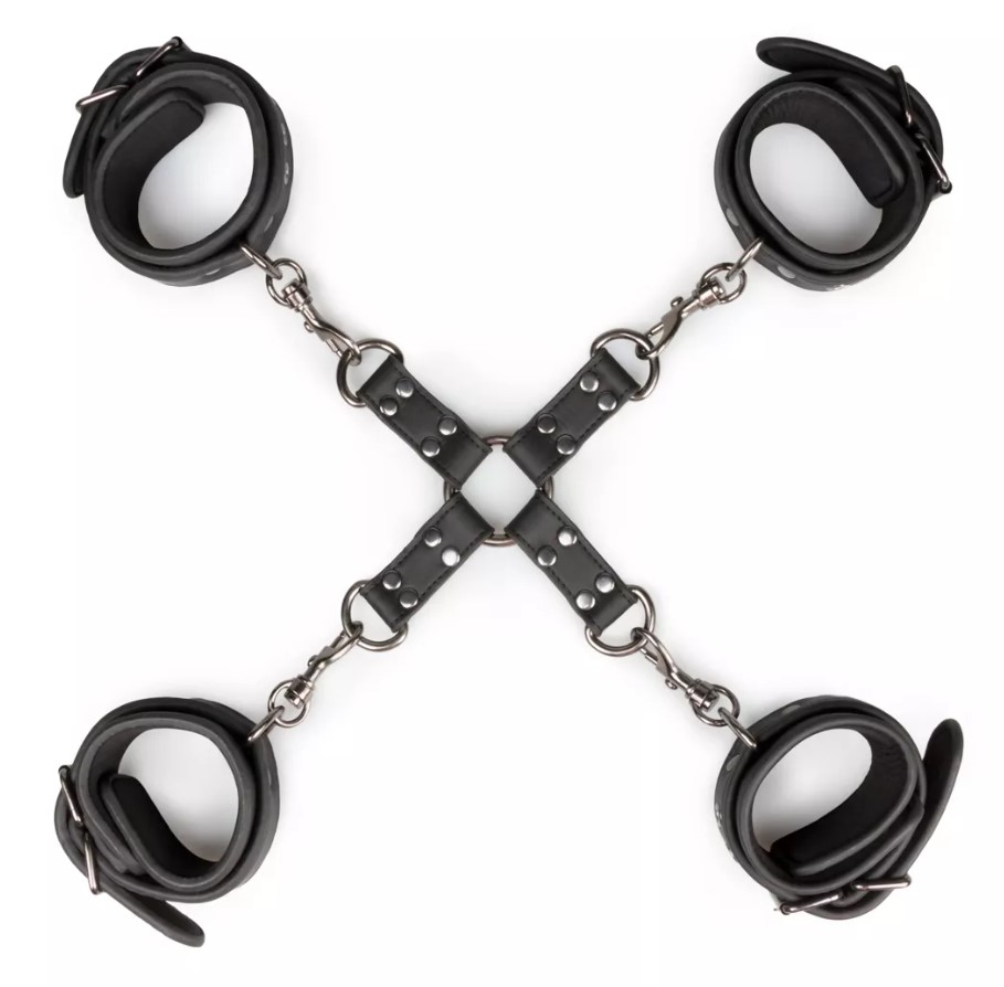 Easy Toys Ankle And Wrist Cuffs & Hogtie Set — это БДСМ набор, который состоит из фиксаторов для рук и ног, соединенных между собой прочной крестовиной.