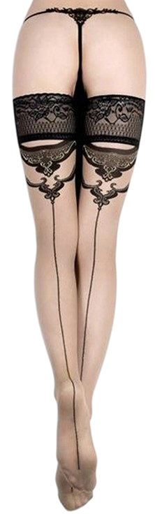 Ballerina’s Secret 314 — интересные телесные секси чулки с широкими черными резинками и рисунком сзади.