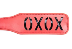 DS Fetish Paddle XOXO — красная БДСМ шлепалка с резьбой в виде надписи ХОХО, которая поможет Вам в играх с доминированием и подчинением.