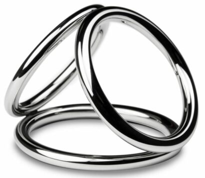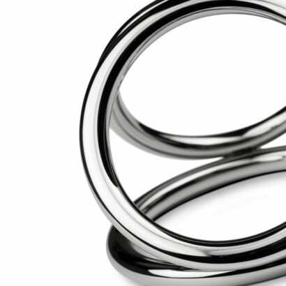 Unbendable Triad Chamber Metal Cock And Ball Ring L — тройное эрекционное кольцо, которое надевается на пенис и мошонку, эффективно поддерживая эрекцию и помогая задержать эякуляцию.