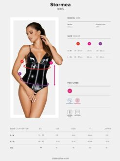 Obsessive Stromea — облегающее лаковое боди с открытой промежностью, которое станет идеальным дополнением к БДСМ образу и ролевым секс играм.