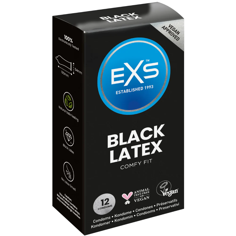Дополните свой интим черными средствами для защиты EXS Black Latex. Они изготовлены из прочного латекса и порадуют черным цветом любителей экспериментировать в постели.