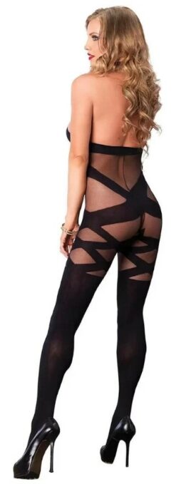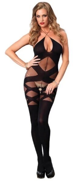 Leg Avenue Illusion Halter Bodystocking — роскошный облегающий комбинезон с геометрическим орнаментом, имитацией чулок и глубоким соблазнительным декольте, который сведет с ума любого мужчину и женщину.
