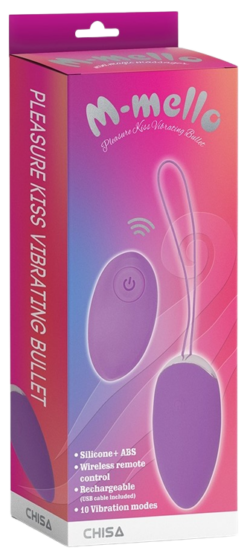 M-Mello Pleasure Kiss Vibrating Bullet — компактное виброяйцо с 10 режимами вибрации и дистанционным управлением, которое можно использовать как в спальне, так и за пределами дома для Ваших эротических игр.