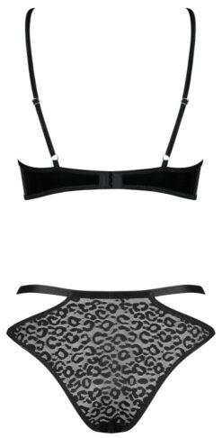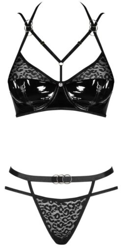 Комплект белья Obsessive Bagirela — это дерзкий сексуальный наряд, в котором сочетаются нежные полупрозрачные ткани со страстным орнаментом и смелые лаковые вставки с тонкими бретелями.